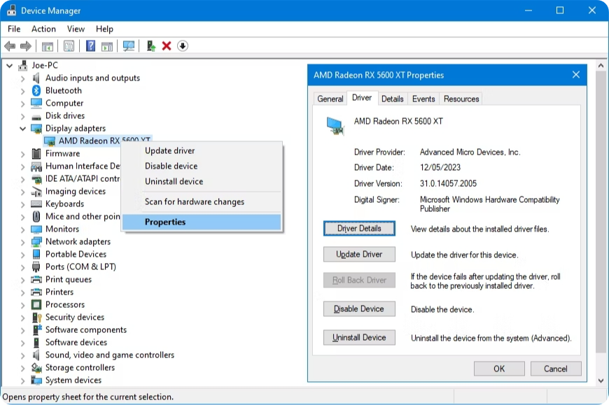 Device Manager displays all your devices categorized (e.g., Disk drives, Monitors, and Printers). To examine a device’s driver details: